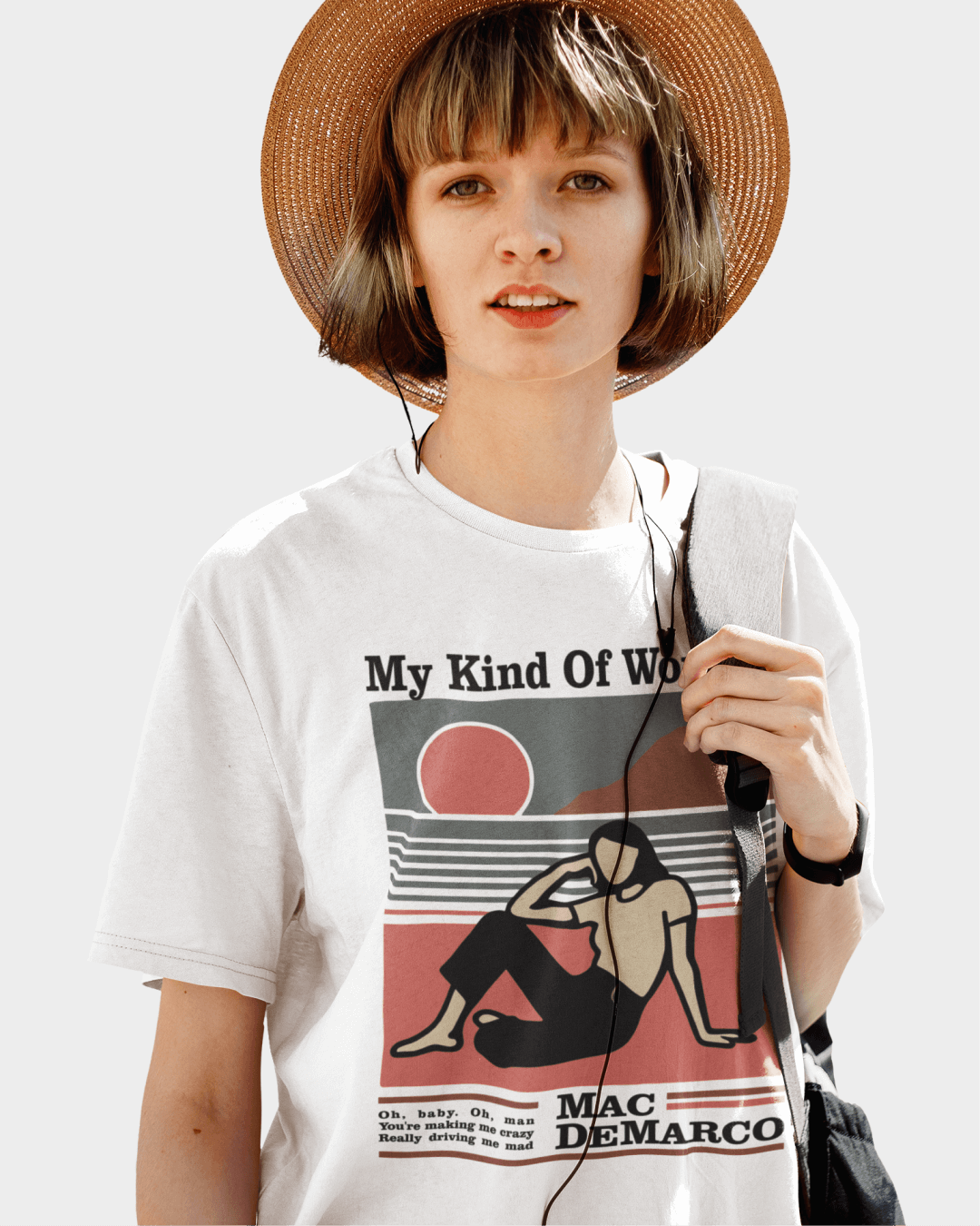 Descubra a nova camiseta "My Kind of Woman" de Mac DeMarco na Foremost! Com design minimalista e estilo indie, essa peça é perfeita para fãs de camisetas de bandas e lo-fi. Garanta já a sua.