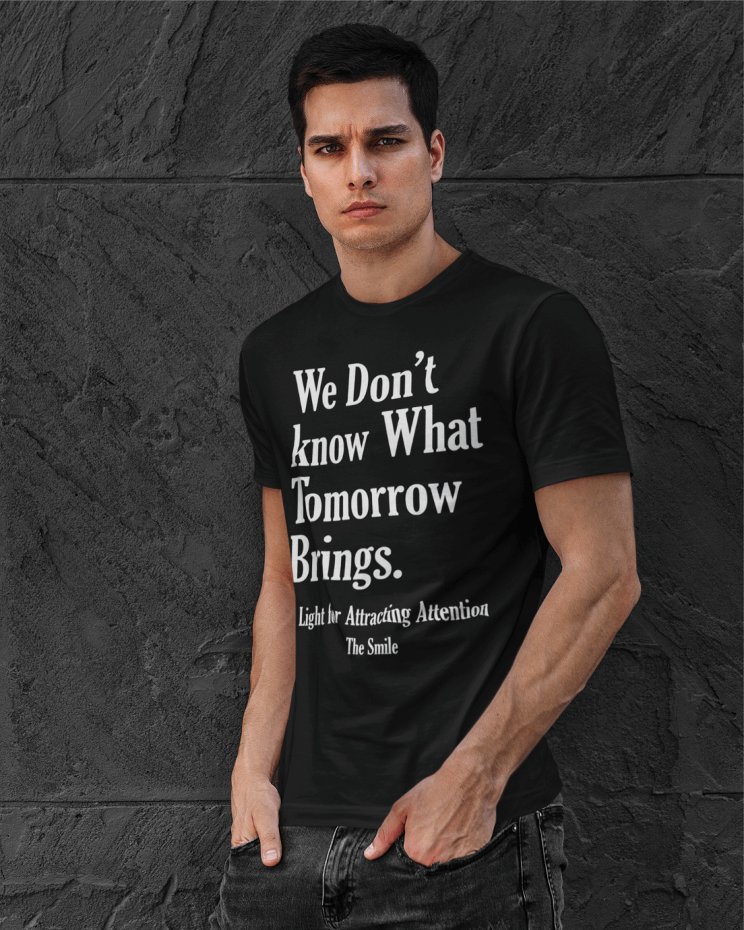 Explore a nova camiseta minimalista da Foremōst, inspirada na música de Thom Yorke. Com estampa tipográfica impactante e a frase "We Don’t Know What Tomorrow Brings", ideal para fãs de Radiohead e amantes de camisetas de bandas Indie. Use foremost e expresse seu estilo!