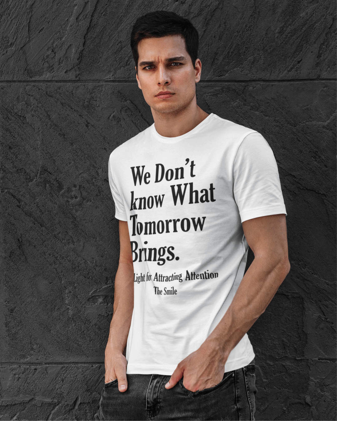 Explore a nova camiseta minimalista da Foremōst, inspirada na música de Thom Yorke. Com estampa tipográfica impactante e a frase "We Don’t Know What Tomorrow Brings", ideal para fãs de Radiohead e amantes de camisetas de bandas Indies. Use foremost e expresse seu estilo!